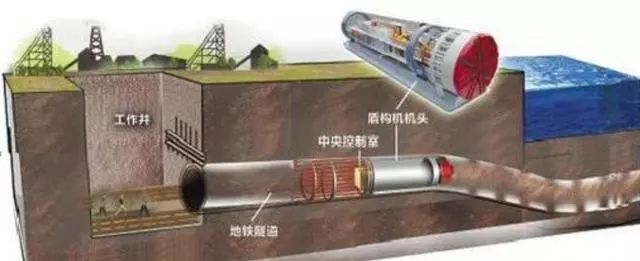 使用盾構機在地中推進,通過盾構外殼和管片支撐四周圍巖,防止發生隧道內的坍塌,同時在開挖面前方用刀盤進行土體開挖,通過出土機械運出洞外,靠推進油缸在后部加壓頂進,并拼裝預制混凝土管片,形成隧道結構的一種機械化施工方法。