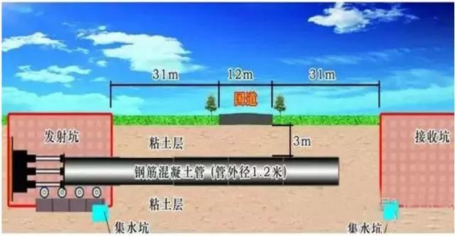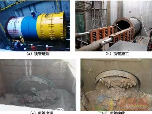 當管廊穿越鐵路、道路、河道或建筑物等各種障礙物時,采用一種暗挖式的施工方法。在施工中,通過傳力頂鐵和導向軌道,用支撐與基坑后座上的液壓千斤頂將管線壓入土層中,同時挖除并運走管正面的泥土。適用于軟土或富水軟土層。無需明挖土方,對地面影響小;設備少、工藝簡單、工期短、造價低、速度快;適用于中型管道施工,但管線變向能力差,糾偏困難。