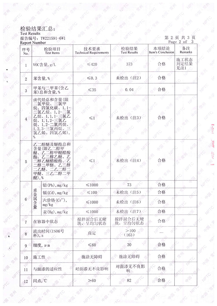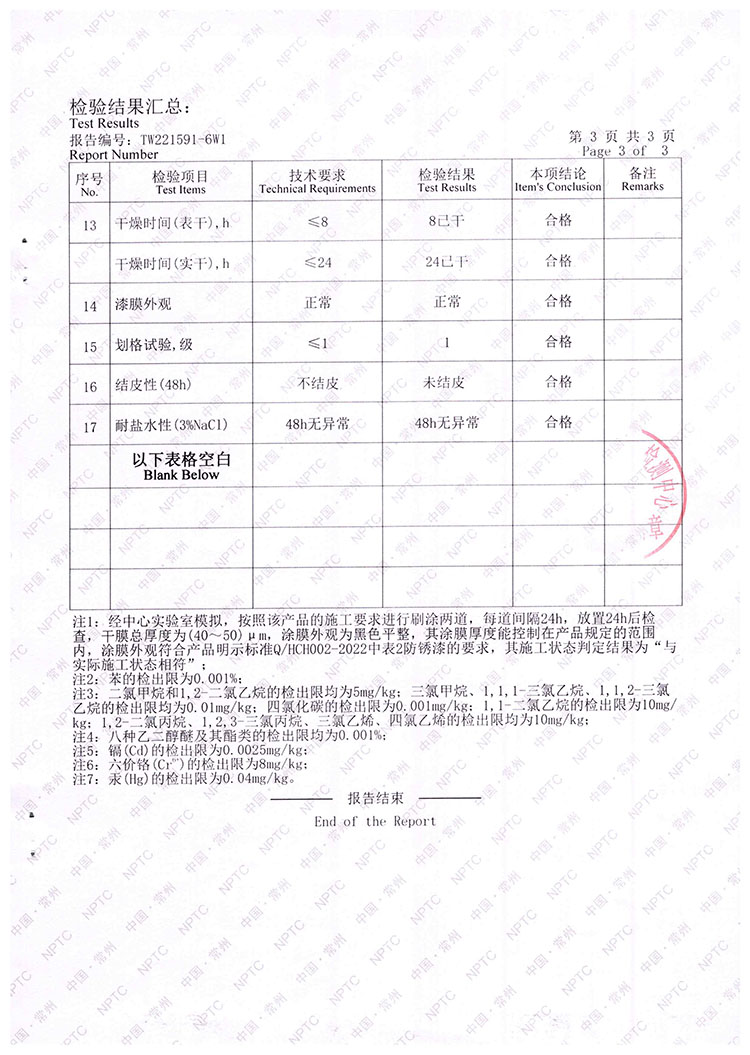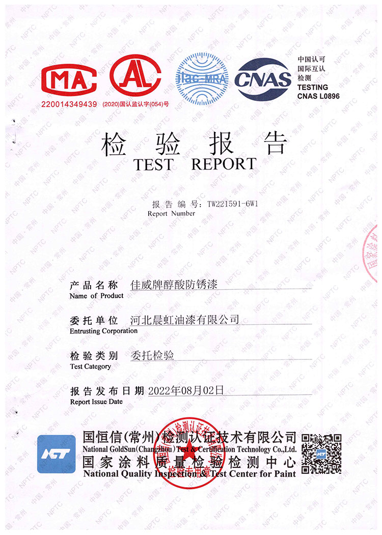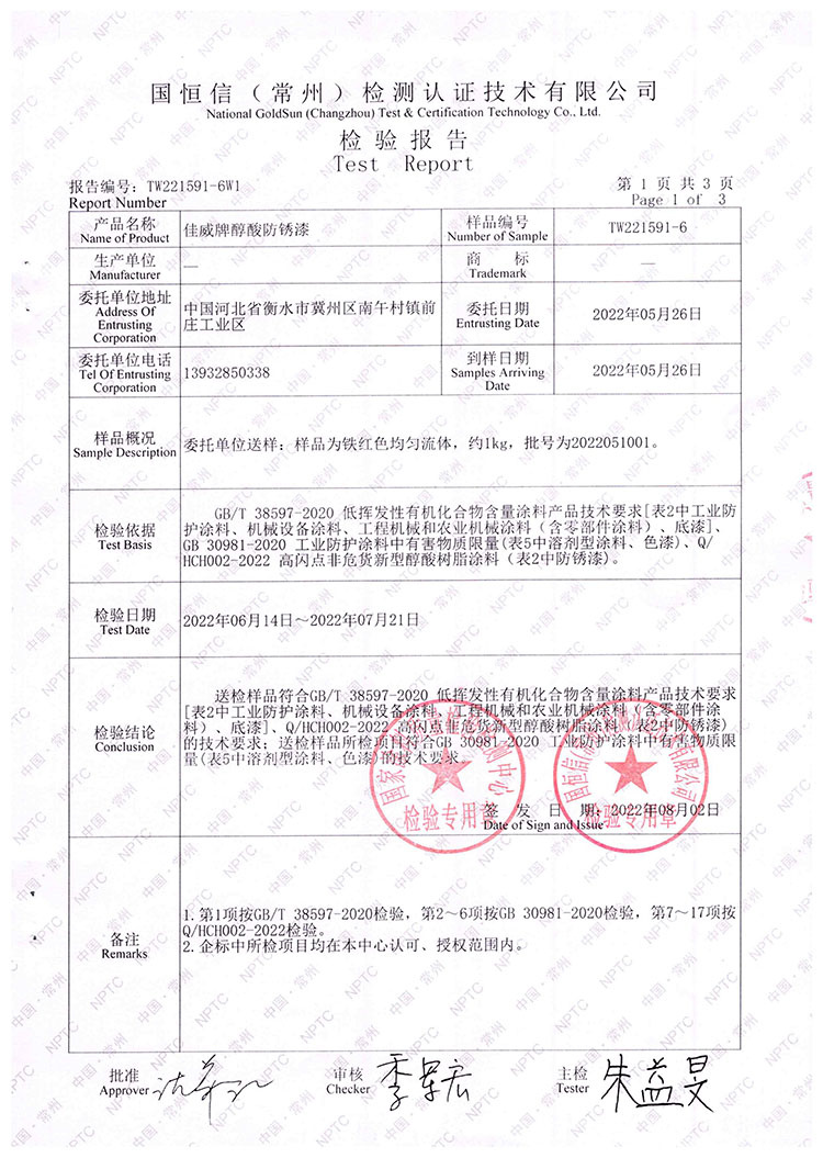 佳威醇酸防銹漆檢驗報告